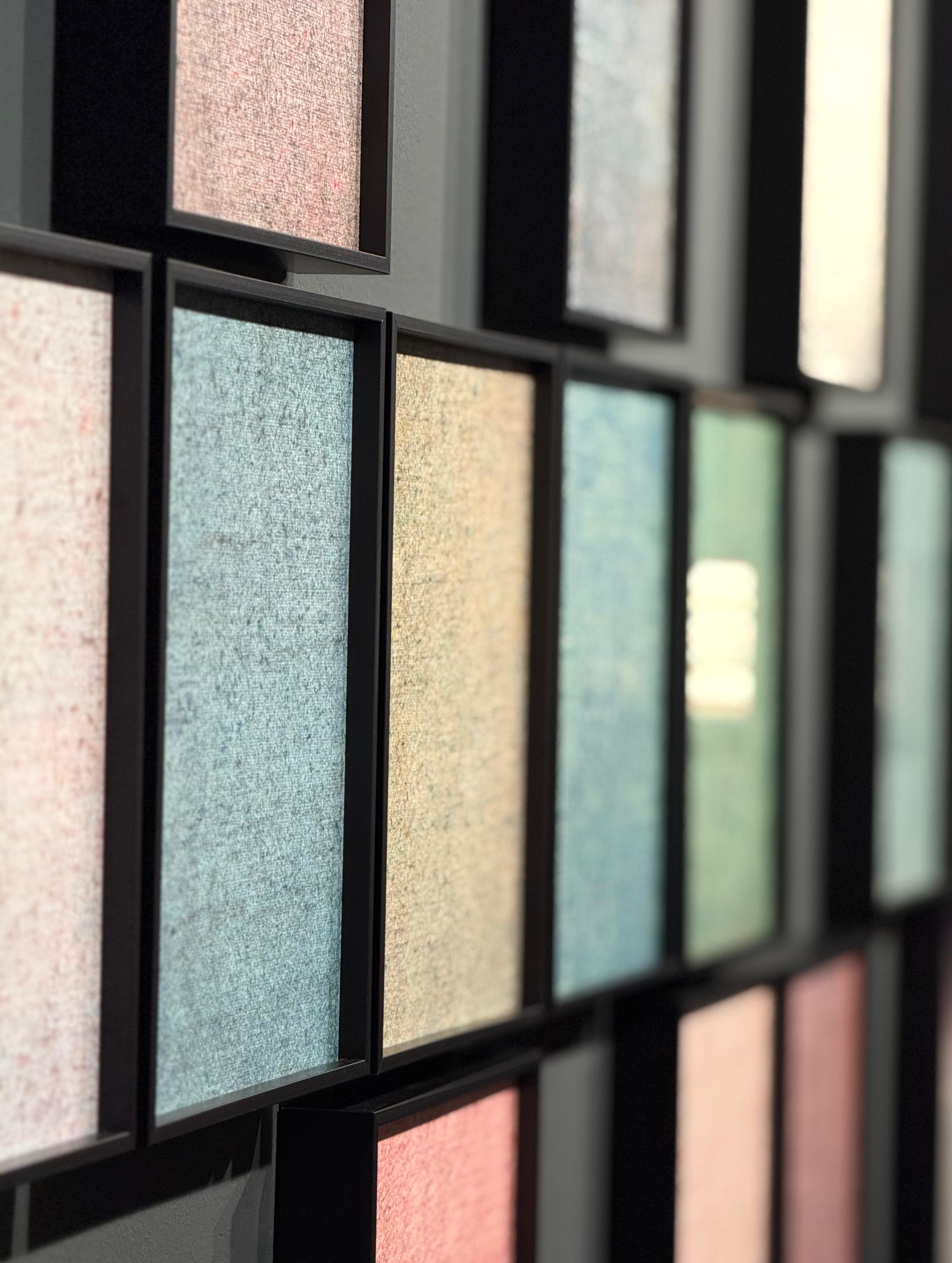 “En esta serie me aproximo al color como un ser vivo: que vibra, que pesa, que tiene una temperatura, que siente y respira. Me interesa la comunicación entre un color y otro, las relaciones y los diálogos que nacen.”