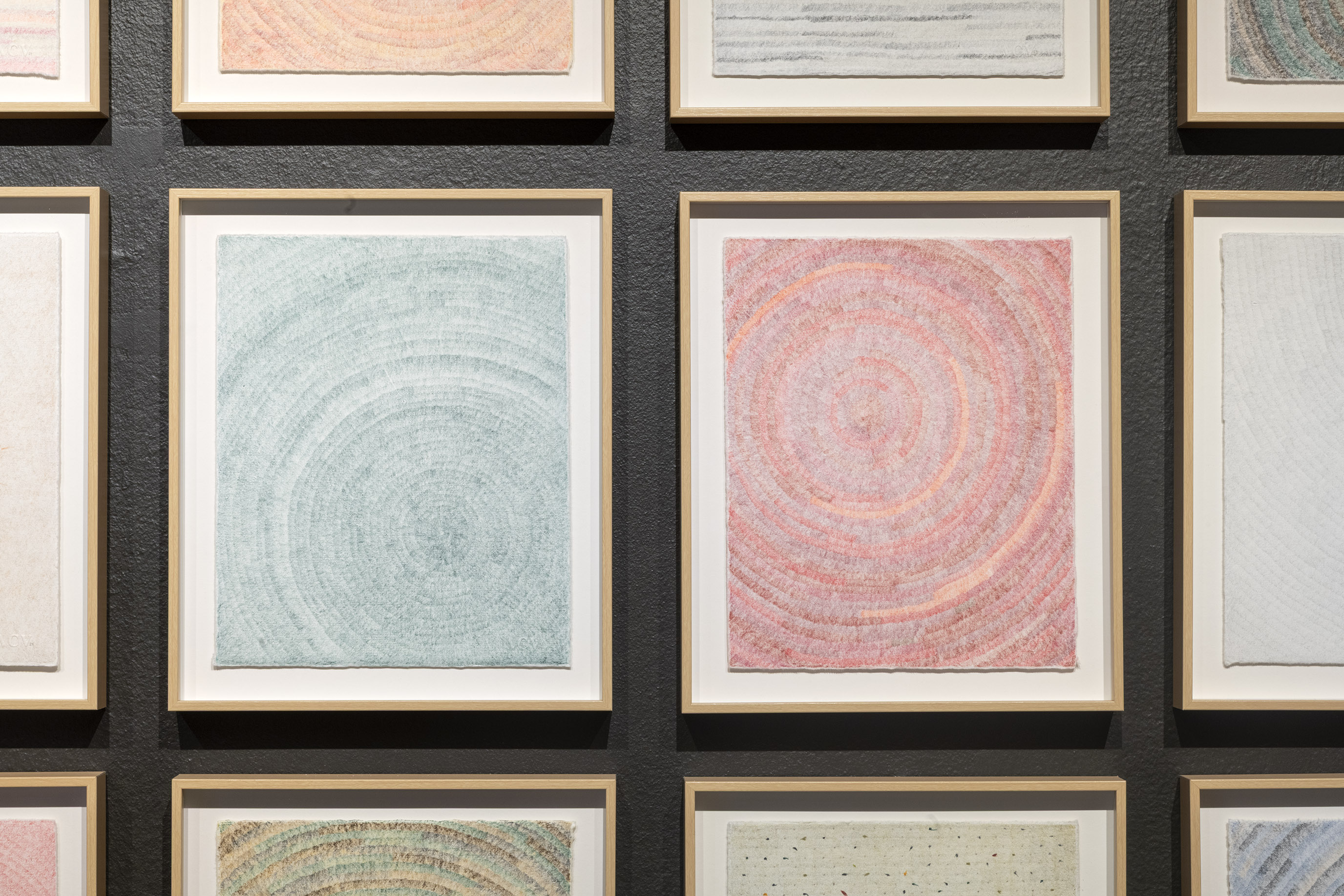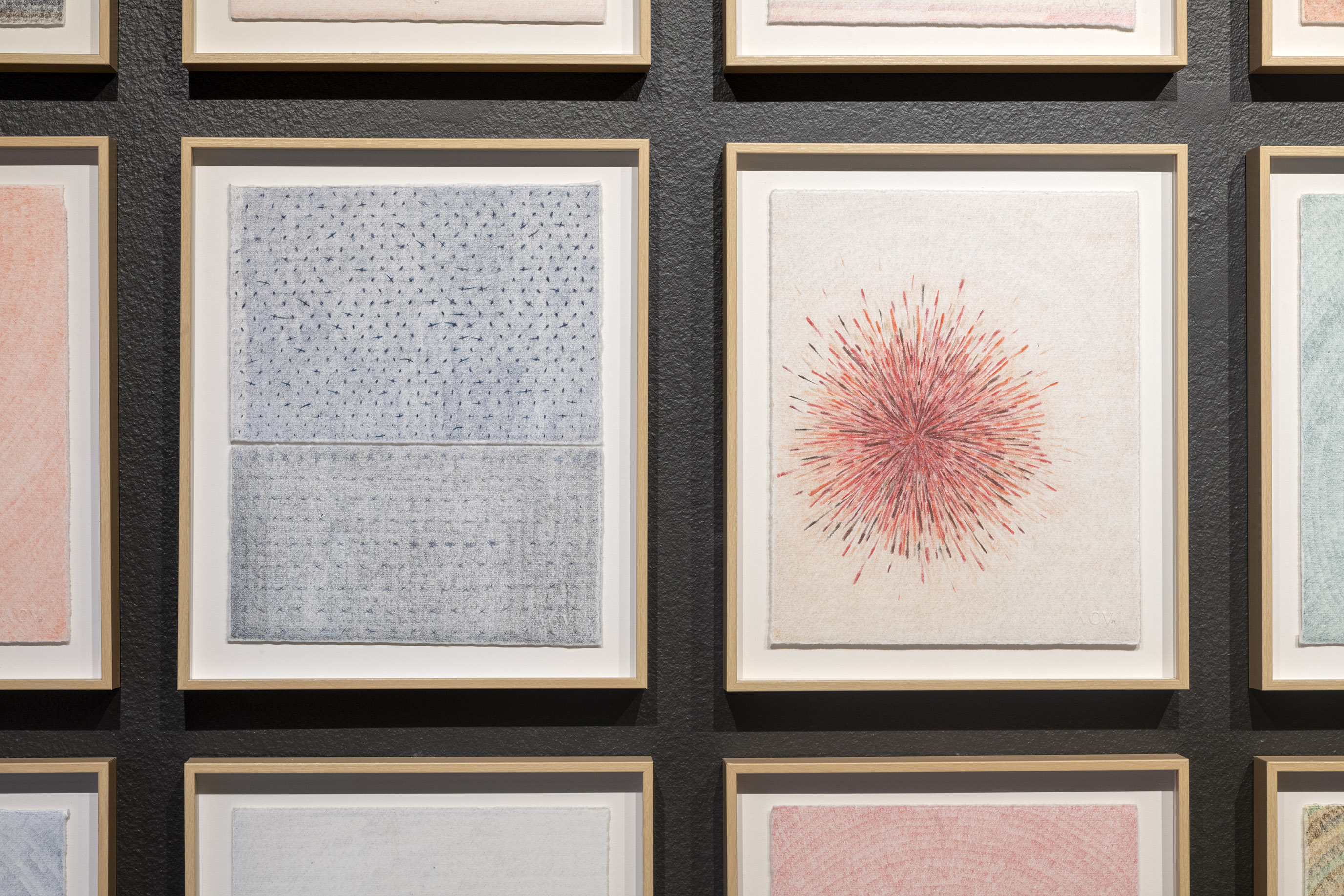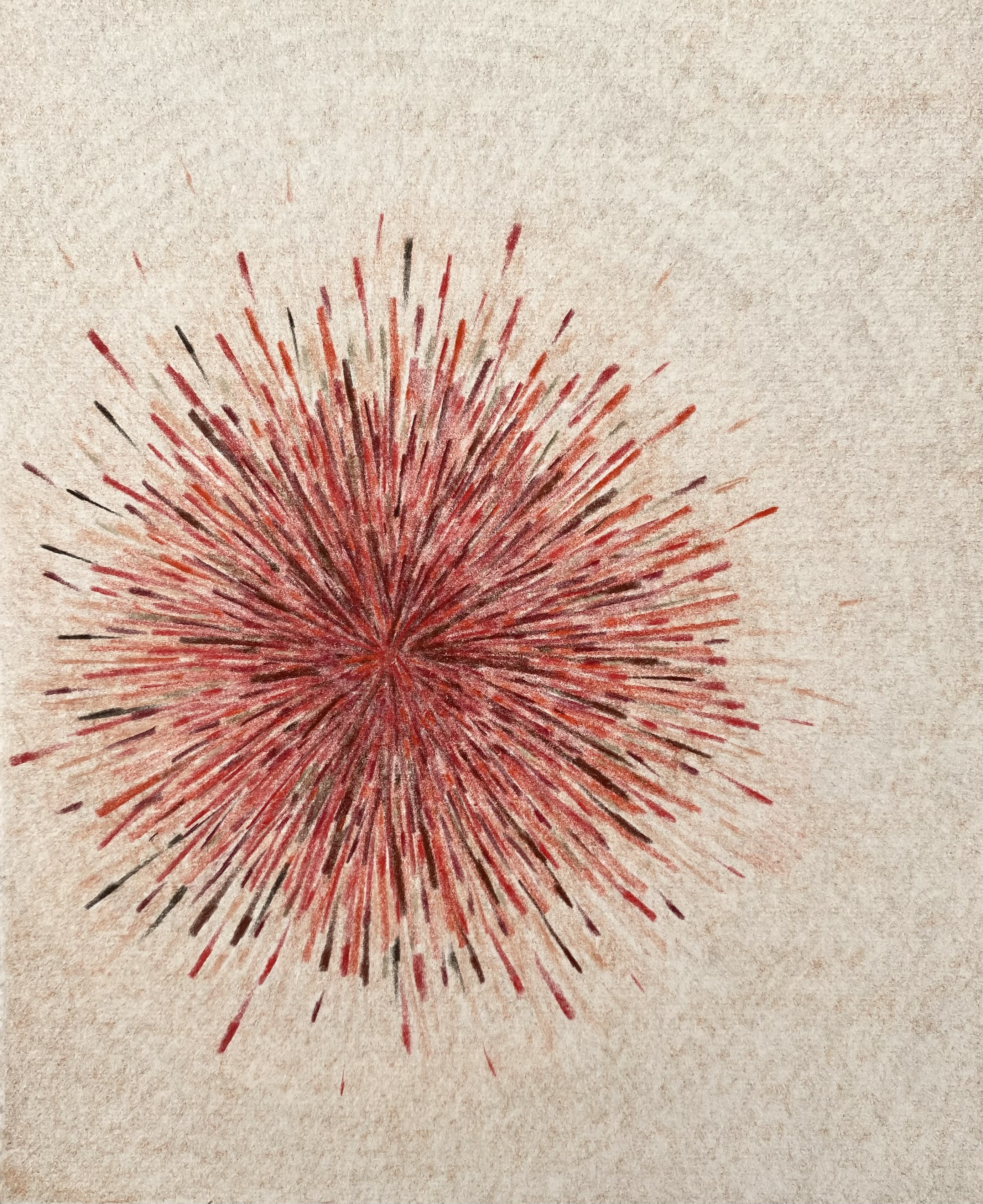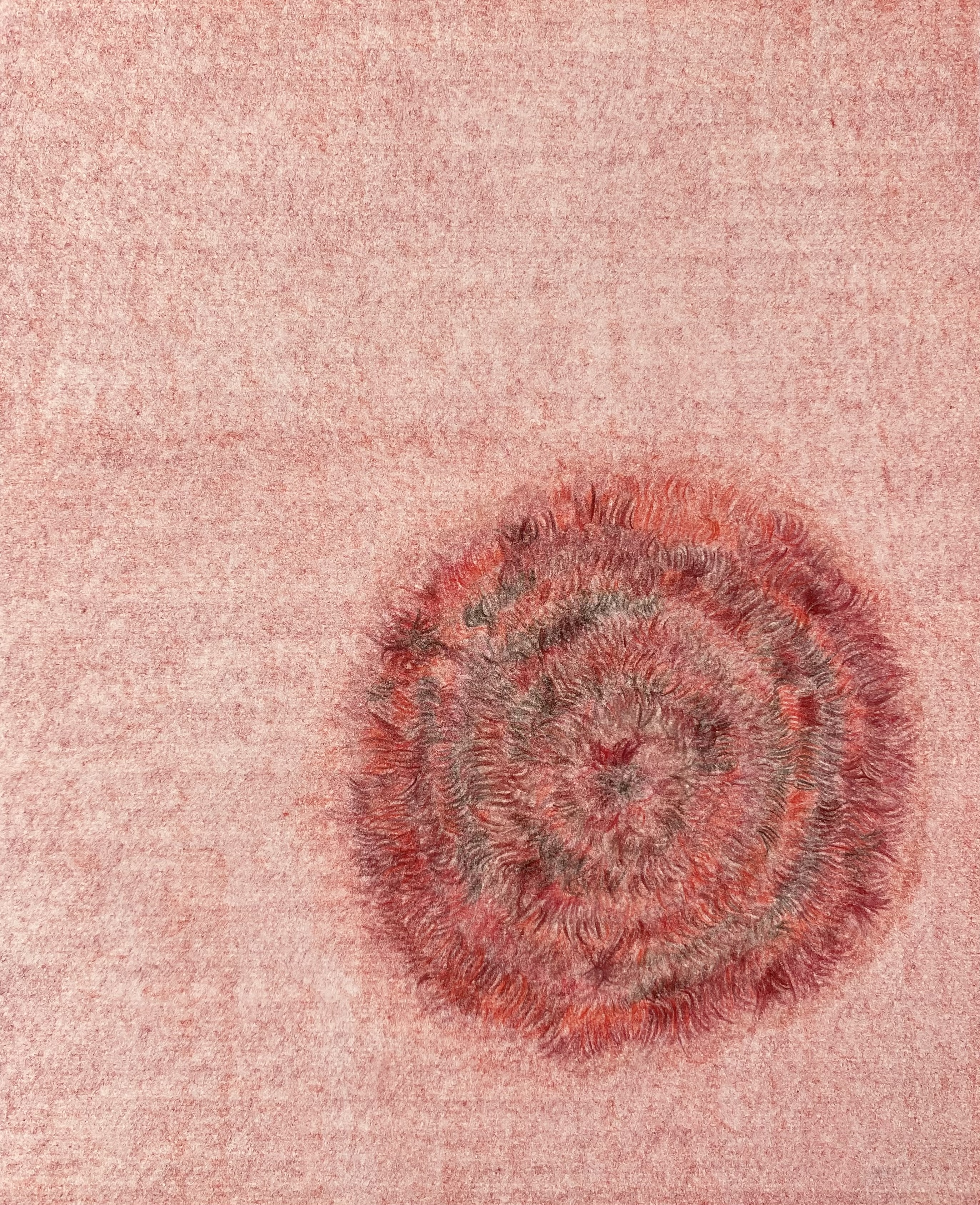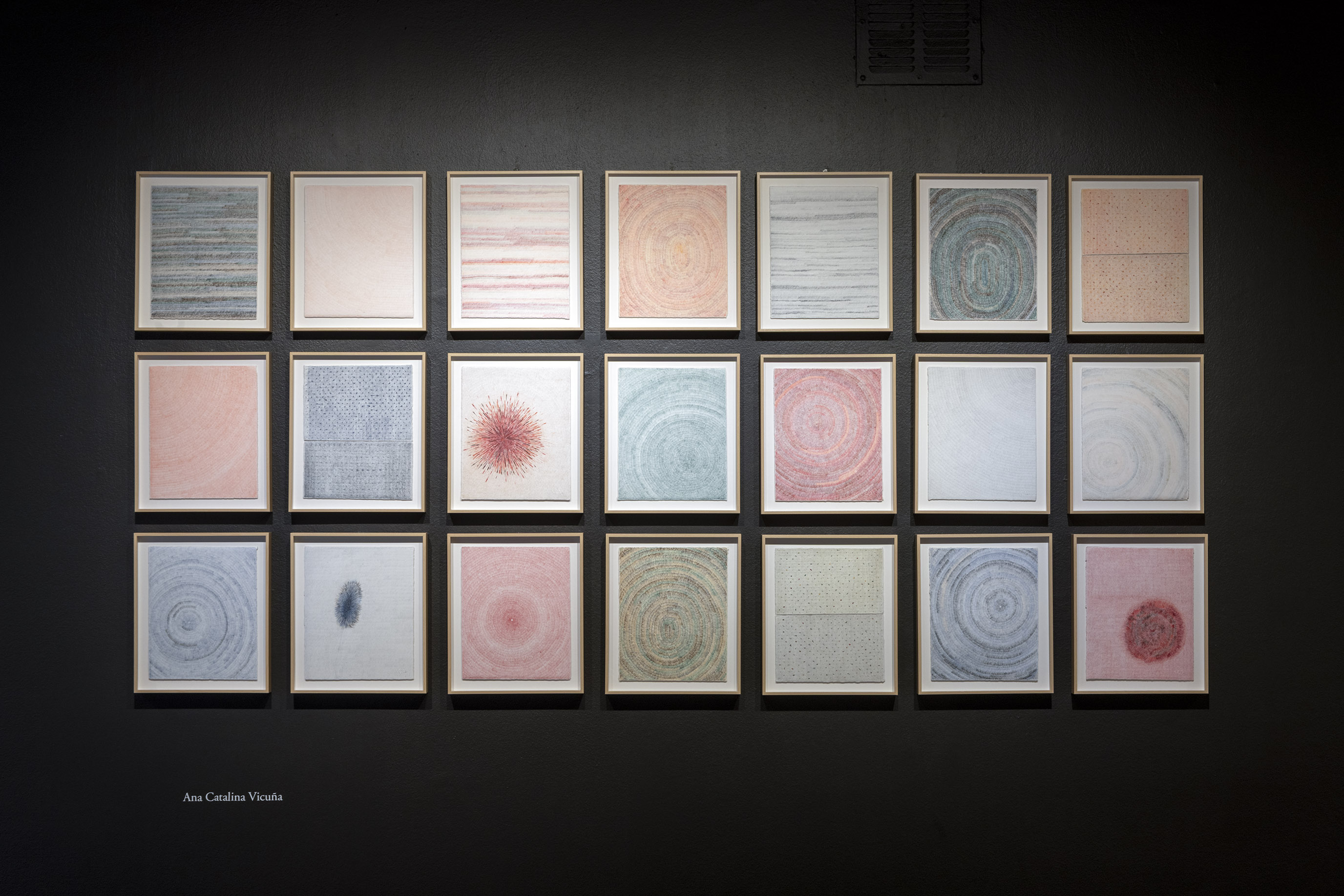 Ana Catalina Vicuña (Chile), a través de un ritmo constante entre caminatas en silencio y trabajo, intervino el papel con una gama acotada de lápices de colores, integrando el pulso de la naturaleza que la rodeaba. Daniela Vera (Chile), con puntadas de hilo sobre tela, estableció un diálogo entre los dibujos de Ana Catalina y la cestería de Arcenio. Arcenio Moya (Colombia), artesano de la comunidad Wounaan en Bogotá y Chocó, viajó con sus materiales, continuando con la técnica y el ritmo que la tejeduría exige, integró nuevas formas a su cestería.